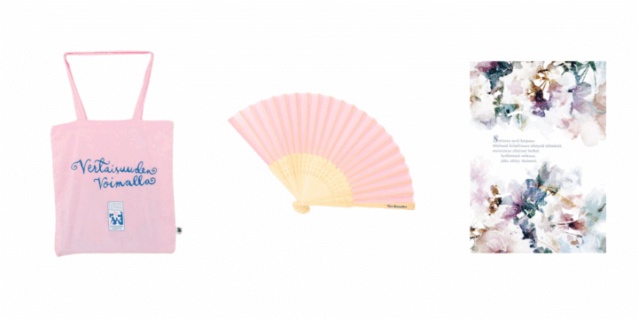 Myös Rintasyöpäyhdistys Europa Donna Finland ry:n omassa Rinnakkain-kaupassa on uusia ihania tukituotteita. Rinnakkain-kaupasta löydät nyt hurmaavan Vertaisuuden voimalla -kangaskassin, käytännöllisen Toivo kannattaa -viuhkan sekä kauniit suruadressit. Saatavilla edelleen myös juhlavuoden kauniit korut sekä kiinnostavia kirjoja rintasyövästä.